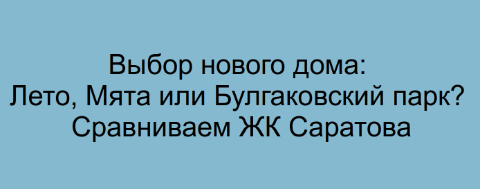 Выбор нового дома: Лето, Мята или Булгаковский парк? Сравниваем ЖК Саратова